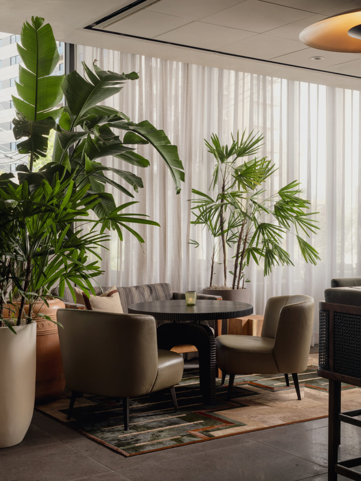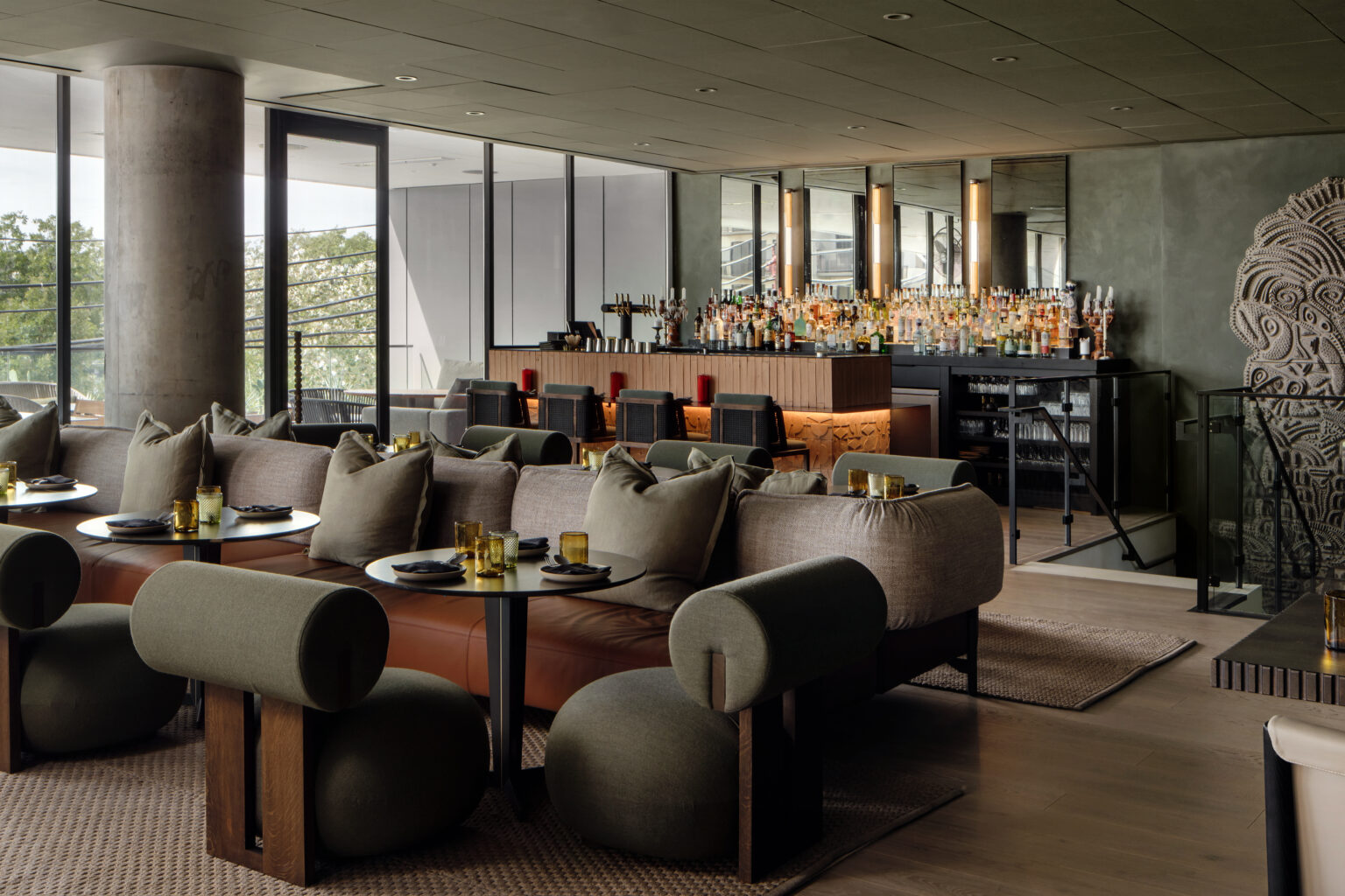 At the heart of Bacalar sits the main bar with custom-made stools which invite guests to linger. The versatile surrounding furniture arrangements cater to diverse dining preferences, ensuring both beauty and comfort are seamlessly intertwined throughout the dining experience.