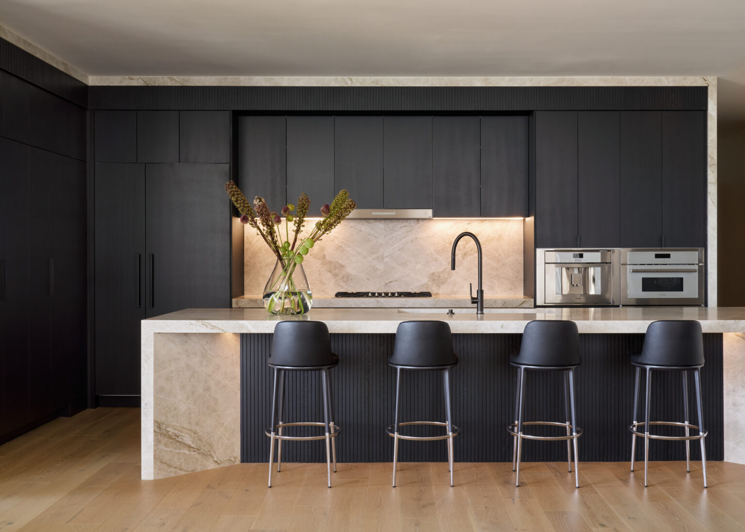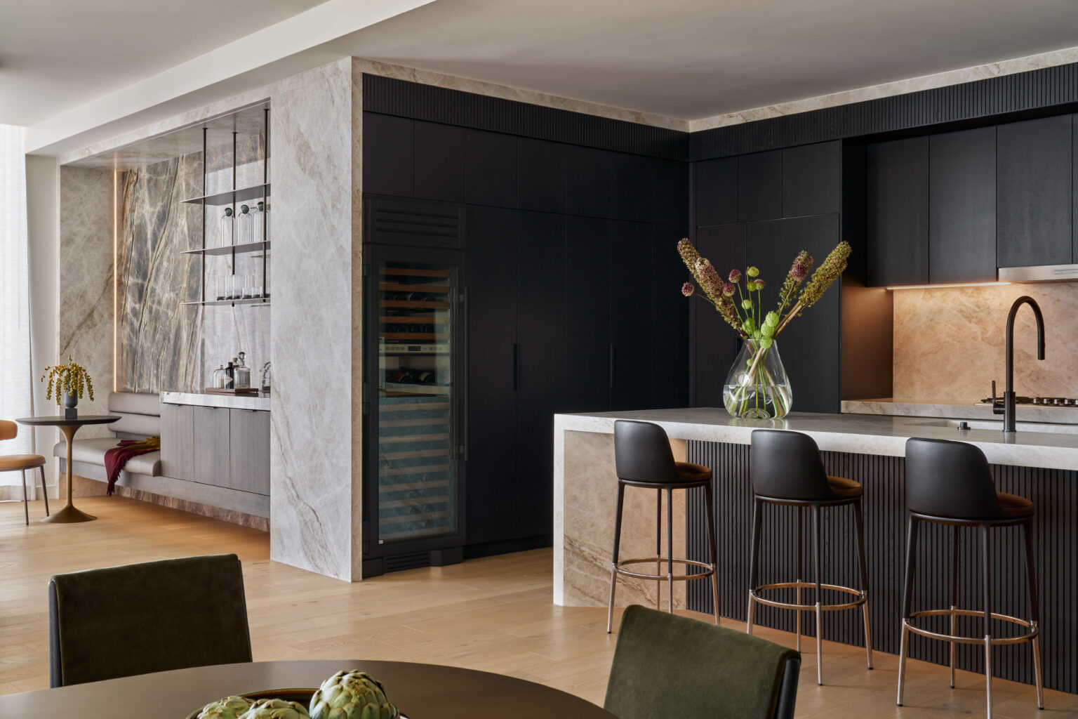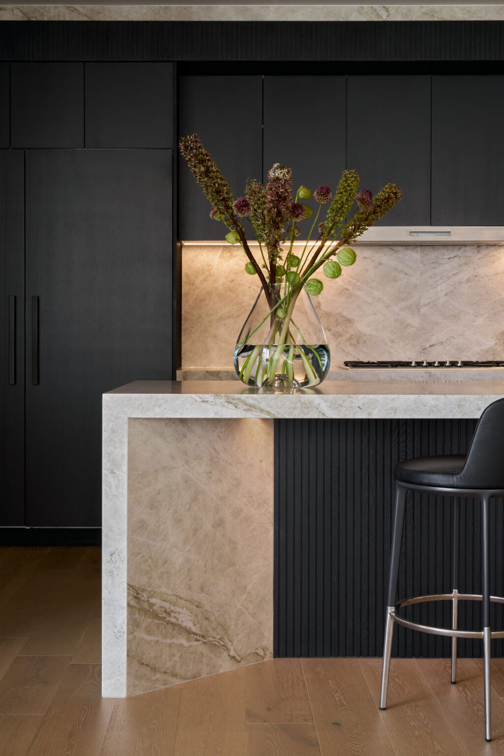 Originally part of a multi-family tower development, this downtown condo renovation was reimagined to break free from the standard units. The design team completely transformed this space to reflect the client’s lifestyle through enlarging the kitchen, designing custom millwork, and updating finishes, while prioritizing sustainable design.