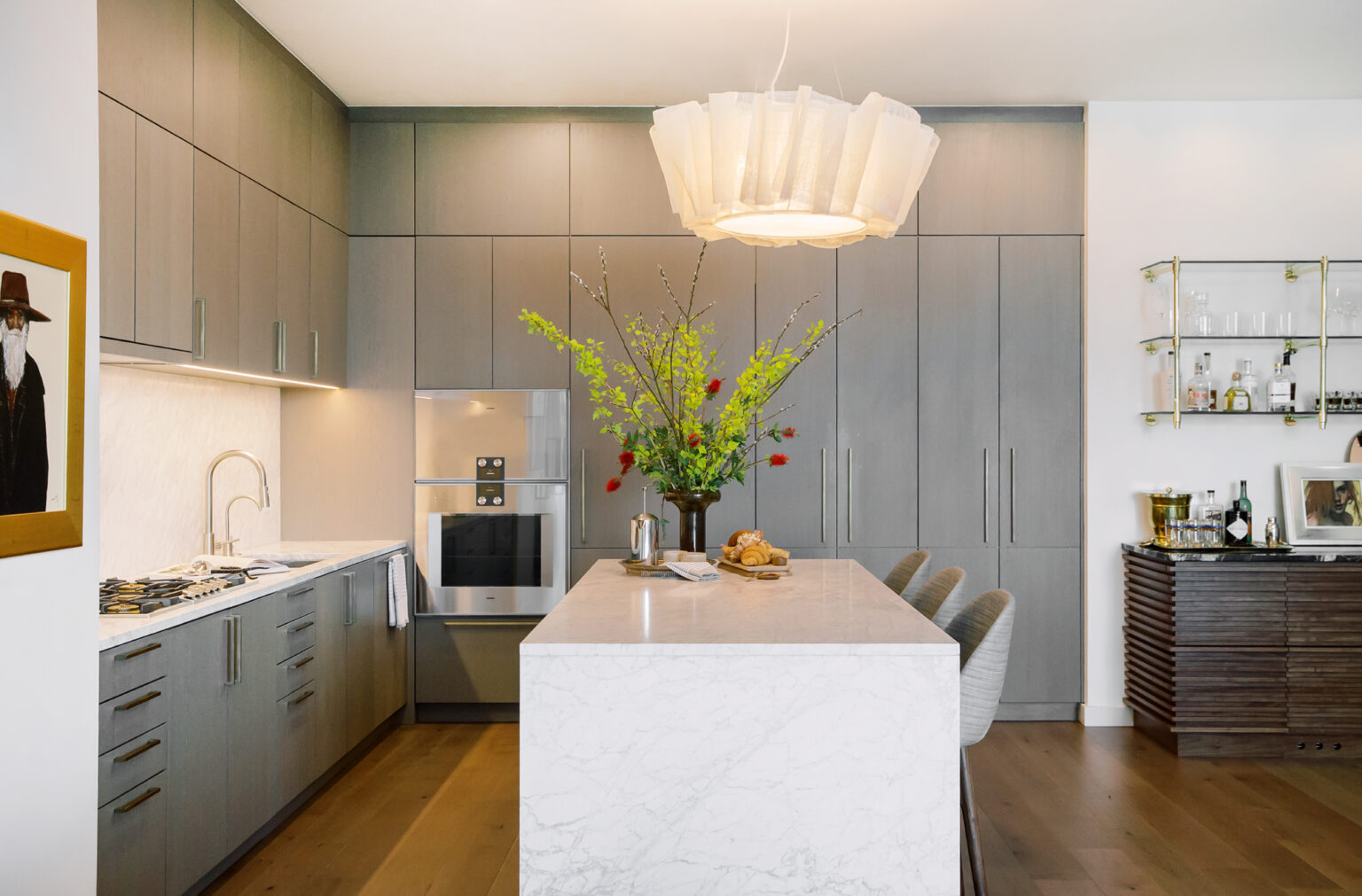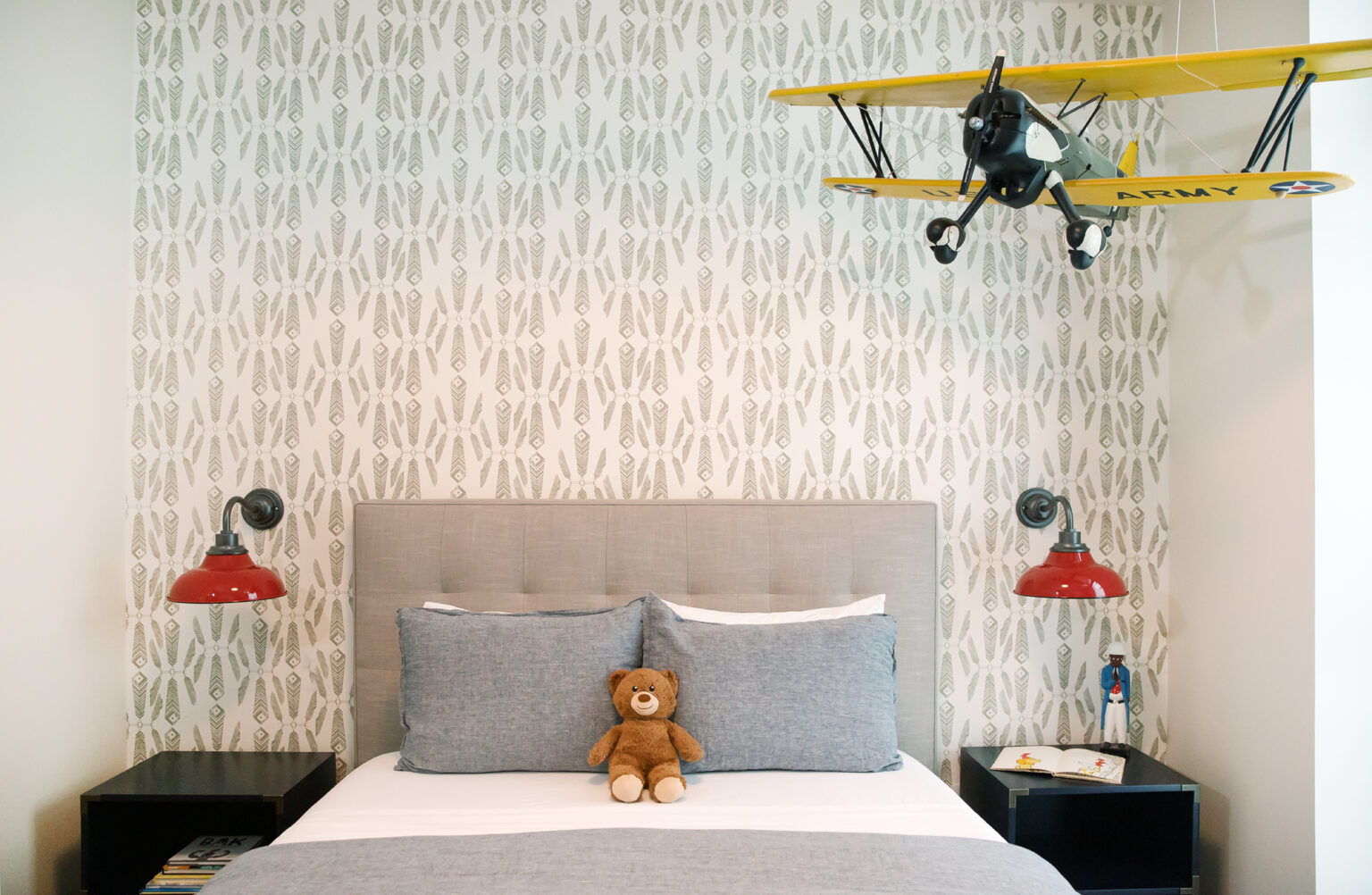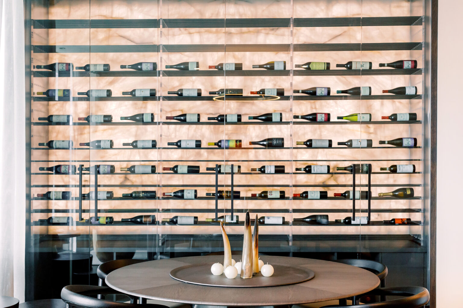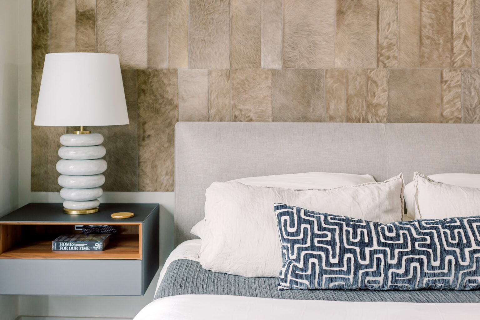 Our clients for this project were a family including two children, moving from their single family home to a new condo downtown. Our intent was to make our clients unit feel more like a home and less like a condo, by creating a warm and curated space. We had a beautiful palette to start with and by adding layers of drapery, wallpaper, and indirect light we were able to add a lot of softness. Utilizing our clients eclectic art collection we were able to mix old world charm with some new modern pieces in order to create a finished look. Since these clients were wine connoisseurs we wanted to make a wine room the focal point of the project. We created a custom wine fridge with backlit onyx. Since we were working with a smaller footprint the backlit onyx acted as a continuation of the glazing which allowed for high impact without compromising visual space. We created a hide wall in one of the bedrooms in order to bring some detailing that reflected the design of the lobby and amenity space.